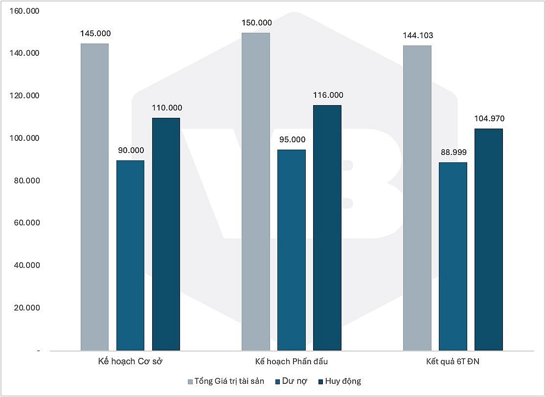 Báo cáo tài chính bán niên hợp nhất của Vietbank ghi nhận 03 mục tiêu tăng trưởng huy động, dư nợ, tổng giá trị tài sản hoàn thành trên 90% kế hoạch phấn đấu chỉ sau nửa năm tài chính. Trong đó, tăng trưởng dự nợ đạt 10% cao hơn mức bình quân toàn ngành 6% (tính đến 28/06/2024).