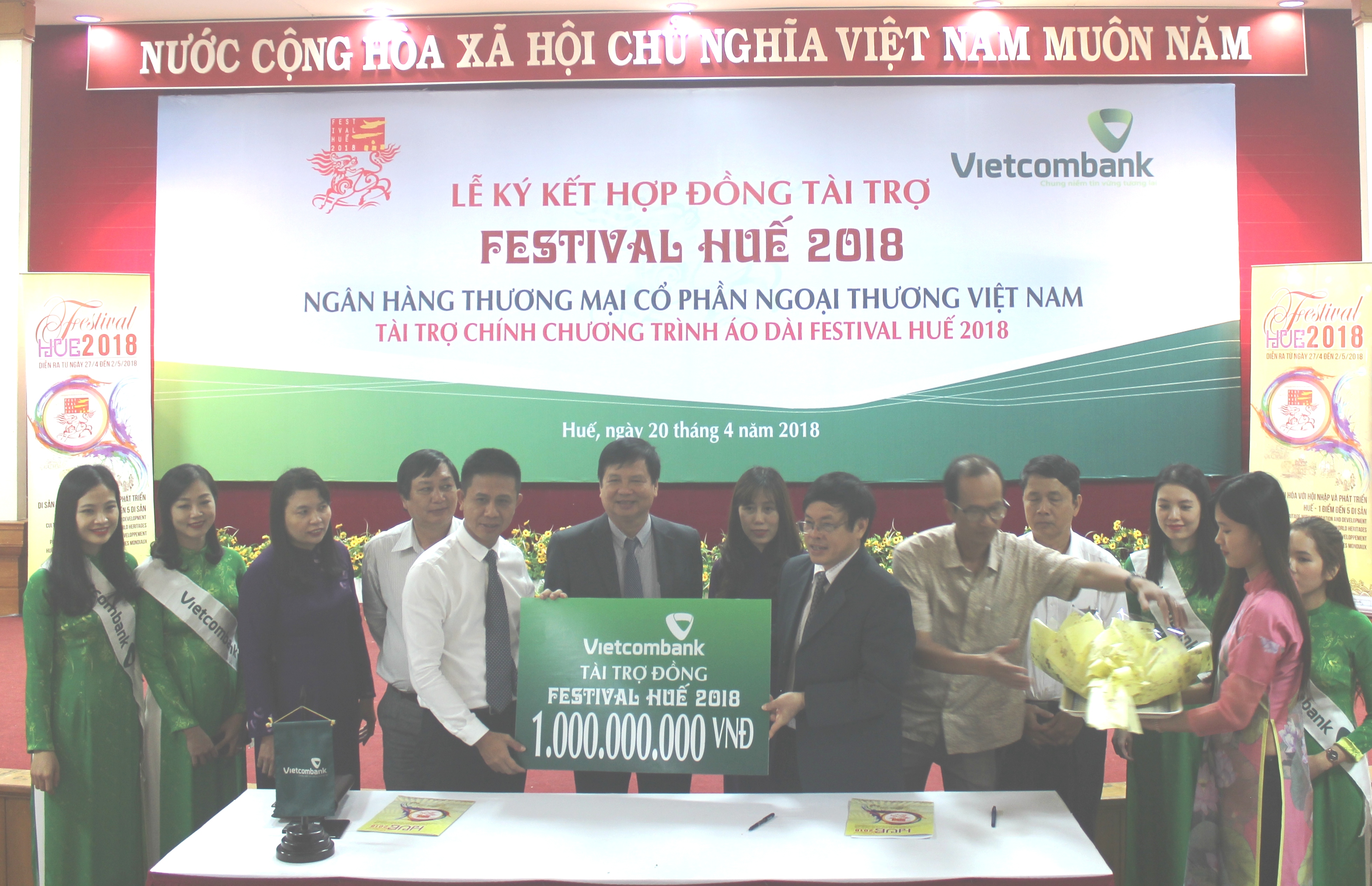 Với chủ đề “Di sản văn hóa với hội nhập và phát triển - Huế 1 điểm đến 5 di sản” Festival Huế lần thứ X sẽ diễn ra từ ngày 27/4-2/5/2018. Nhằm tôn vinh vẻ đẹp của tà áo dài Việt Nam, sáng 20/4/2018, tại Thừa Thiên Huế, Vietcombank và Ban tổ chức Festival Huế 2018 thực hiện ký kết hợp đồng tài trợ với danh vị “Vietcombank - Nhà tài trợ đồng và tài trợ chính Chương trình áo dài”.