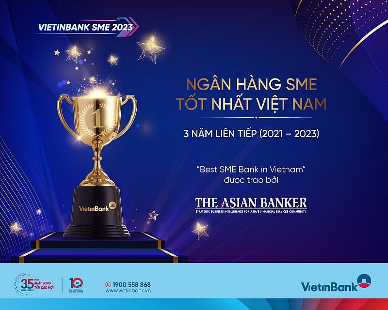 Tại Lễ trao giải Sản phẩm, dịch vụ tài chính xuất sắc toàn cầu năm 2023 do The Asian Banker tổ chức, VietinBank đã được vinh danh Ngân hàng SME tốt nhất Việt Nam. Đây là mốc son ghi dấu ấn lần thứ ba liên tiếp VietinBank giành được giải thưởng danh giá này.