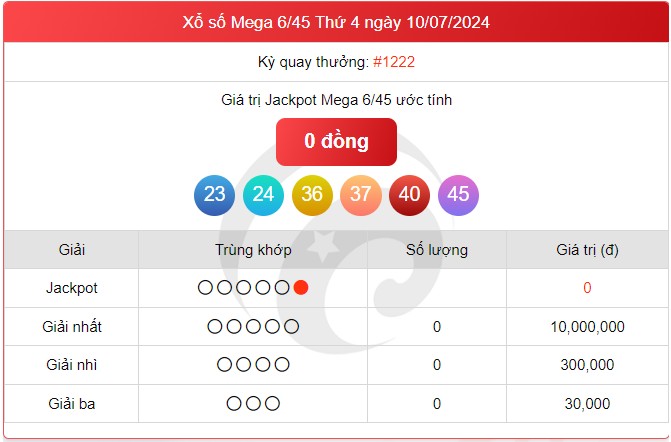 | Vietlott 10/7, kết quả xổ số Vietlott hôm nay 10/7/2024, Vietlott Mega 6/45 10/7 |