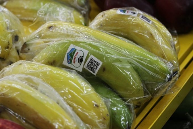 | HAGL's bananas displayed on supermarket shelves - Photo by VnExpress |