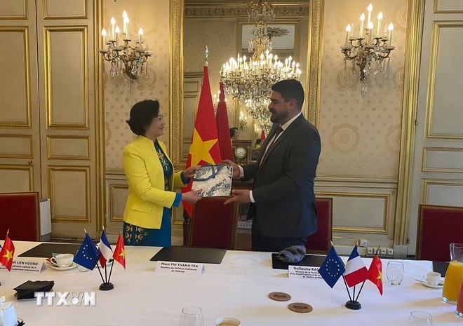 Tại buổi làm việc, Bộ trưởng Phạm Thị Thanh Trà gửi lời chào và chúc mừng tân Bộ trưởng Kasbarian.
