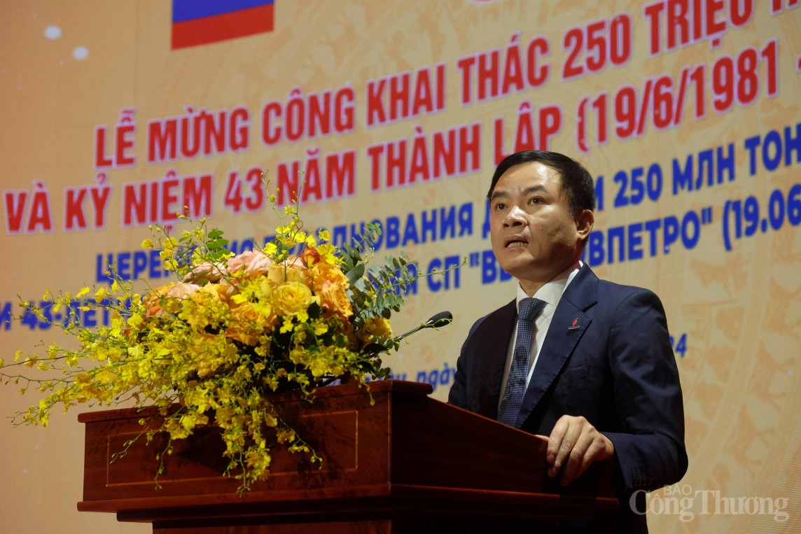 Theo đó, vào lúc 18h18 ngày 15/5/2024, Vietsovpetro đã đánh dấu một cột mốc đáng nhớ khi khai thác thành công tấn dầu thứ 250 triệu trong lịch sử hoạt động của mình. Đây là kết quả rất đáng tự hào, là thành quả của sự lao động cần cù và sáng tạo, dũng cảm vượt qua nhiều khó khăn, thử thách của các thế hệ cán bộ công nhân viên, người lao động Vietsovpetro và ngành Dầu khí, là thành tựu của một hành trình dài 43 năm xây dựng và phát triển.