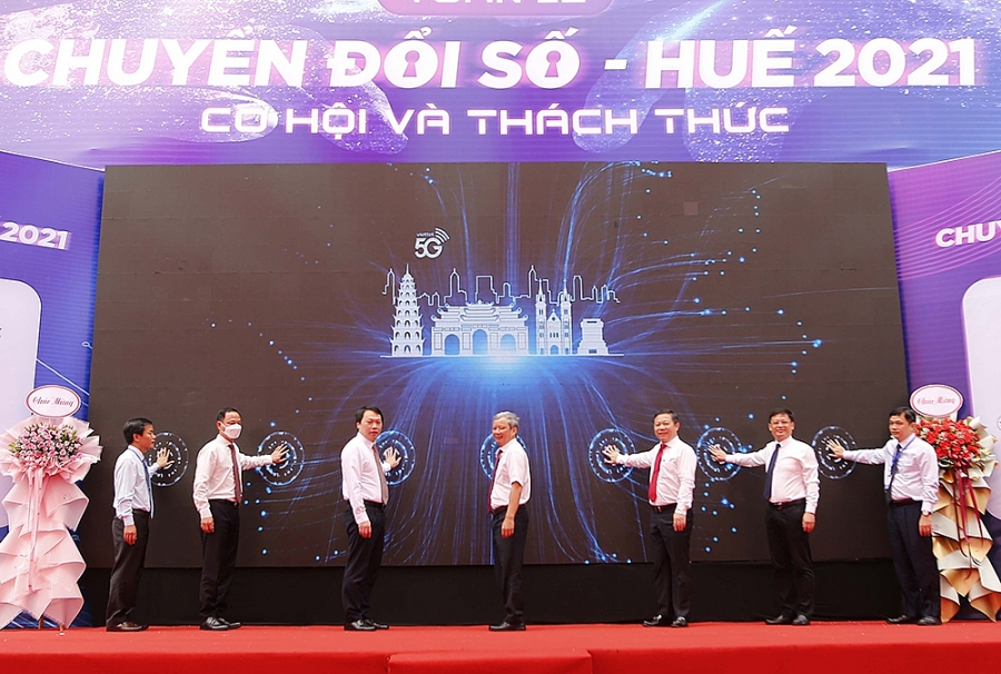 | Nghi thức bấm nút khai trương 5 G của Viettel tại Thừa Thiên Huế |