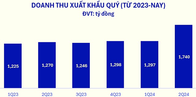 Với các chi nhánh nước ngoài tại Campuchia và Mỹ, doanh thu thuần quý II/2024 đạt 1.384 tỷ đồng, tăng trưởng 21,8% so với cùng kỳ.