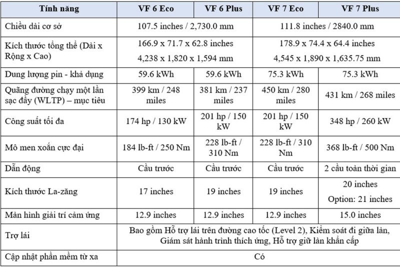 VinFast cho biết, thông số về quãng đường di chuyển mục tiêu theo tiêu chuẩn WLTP. Tiêu chuẩn EPA sẽ được công bố ngay khi có.
