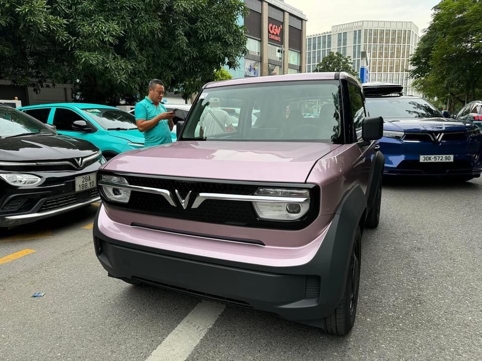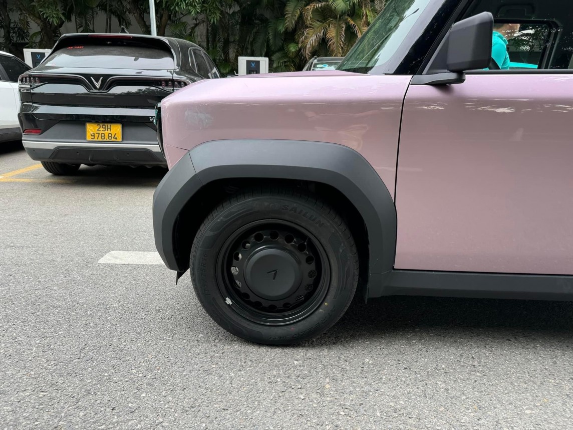 Những hình ảnh ghi nhận được chiếc VinFast VF 3 mới xuất hiện có màu hồng tím mới lạ, được kỳ vọng sẽ thu hút nhiều khách hàng nữ. Đáng chú ý, đầy là phiên bản giới hạn Creators Edition dành cho 6.868 khách hàng tiên phong. Ngoài ra, chiếc VinFast VF 3 này trở nên nổi bật với vành la-zăng 16 inch màu đen thay vì màu bạc như trên phiên bản thử nghiệm trước đó.