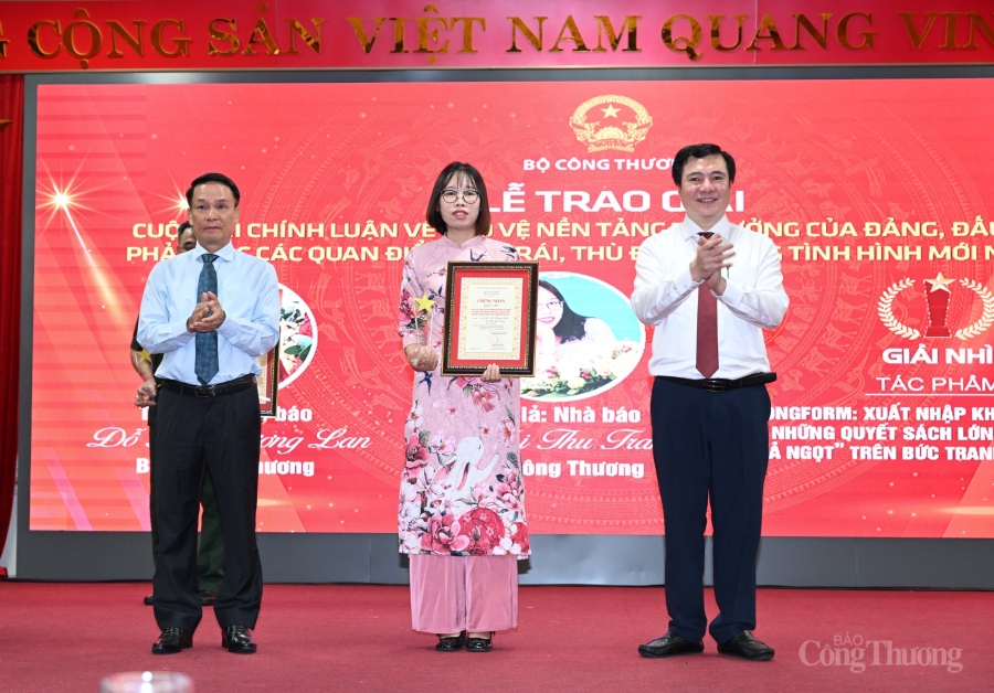 Tham gia Cuộc thi, Tác phẩm Longform: Xuất nhập khẩu hàng hóa: Từ những quyết sách lớn của Đảng đến "Quả ngọt" trên bức tranh ngoại thương (Bài 1: Tự hào hàng Việt ở nước ngoài; Bài 2: Xuất nhập khẩu hàng hóa - "Lớn" nhưng chưa "mạnh"; Bài 3: Giải "bài toán" xuất nhập khẩu bền vững) của Nhà báo Đỗ Thị Phương Lan và Nhà báo Tạ Thị Thu Trang - Báo Công Thương đã vinh dự đoạt giải Nhì cuộc thi. Cuộc thi đã trao 24 Giải, gồm 01 Giải Đặc biệt, 01 Giải Nhất, 05 Giải Chuyên đề; 03 Giải Nhì, 06 Giải Ba, 08 Giải Khuyến khích. 05 đơn vị có thành tích xuất sắc đóng góp vào thành công của cuộc thi đã được nhận Giấy khen. |