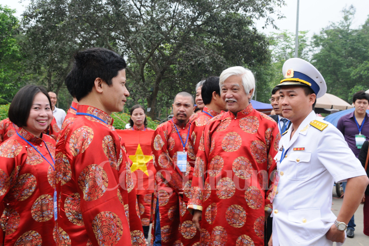 Trước đó, tại Điện Kính Thiên trên đỉnh núi Nghĩa Lĩnh, thuộc Khu Di tích lịch sử quốc gia đặc biệt Đền Hùng (tỉnh Phú Thọ), đoàn đại biểu tham gia chương trình đã thành kính tổ chức lễ dâng hương, tưởng niệm và báo công với Vua Hùng.