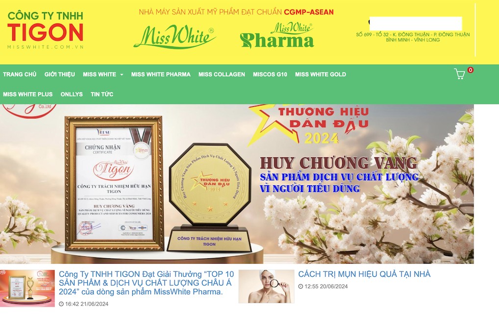 Kèm theo đó là lời quảng cáo khẳng định vị thế của mình (Công ty Tigon - PV) trong ngành công nghiệp mỹ phẩm với các dòng sản phẩm đa dạng, từ chăm sóc da, các sản phẩm chấm mụn mờ sẹo, đến các sản phẩm chống lão hóa. Mỗi sản phẩm của công ty đều được nghiên cứu kỹ lưỡng, thử nghiệm lâm sàng và sản xuất theo tiêu chuẩn quốc tế.