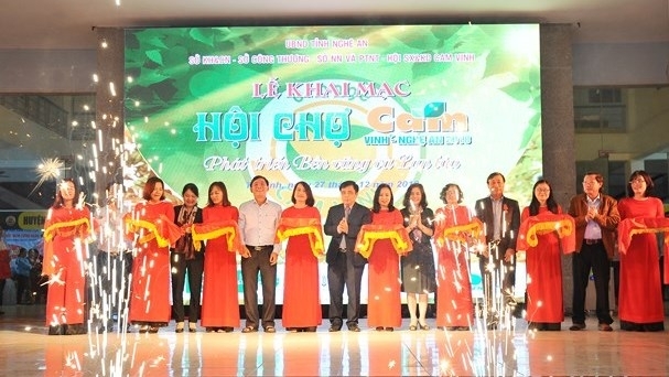 | Delegates cut the ribbon to launch the Vinh Orange – Nghe An Fair 2018 - Photo: baonghean.vn |