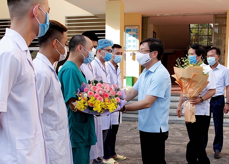 | Chủ tịch UBND tỉnh Vĩnh Phúc Lê Duy Thành động viên tinh thần các cán bộ y tế trước giờ lên đường vào TP. Hồ Chí Minh |
