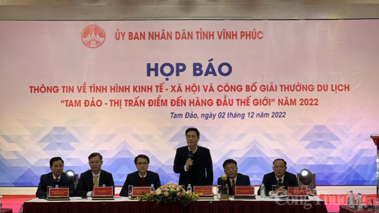 Chiều ngày 2/12, tại thị trấn Tam Đảo, UBND tỉnh Vĩnh Phúc tổ chức họp báo thông tin về tình hình kinh tế - xã hội và công bố giải thưởng du lịch “Tam Đảo – Thị trấn điểm đến hàng đầu thế giới năm 2022”.
