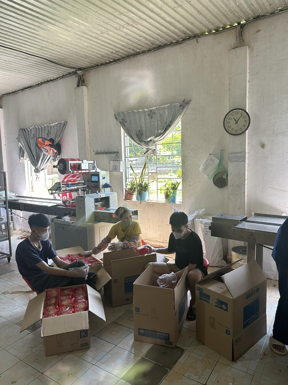 | Nhiều lao động tại cơ sở sản xuất bánh kẹo Hương Lập được cho là học sinh các trường nghề, không được trang bị đầy đủ bảo hộ lao động. Ảnh Nhóm phóng viên |