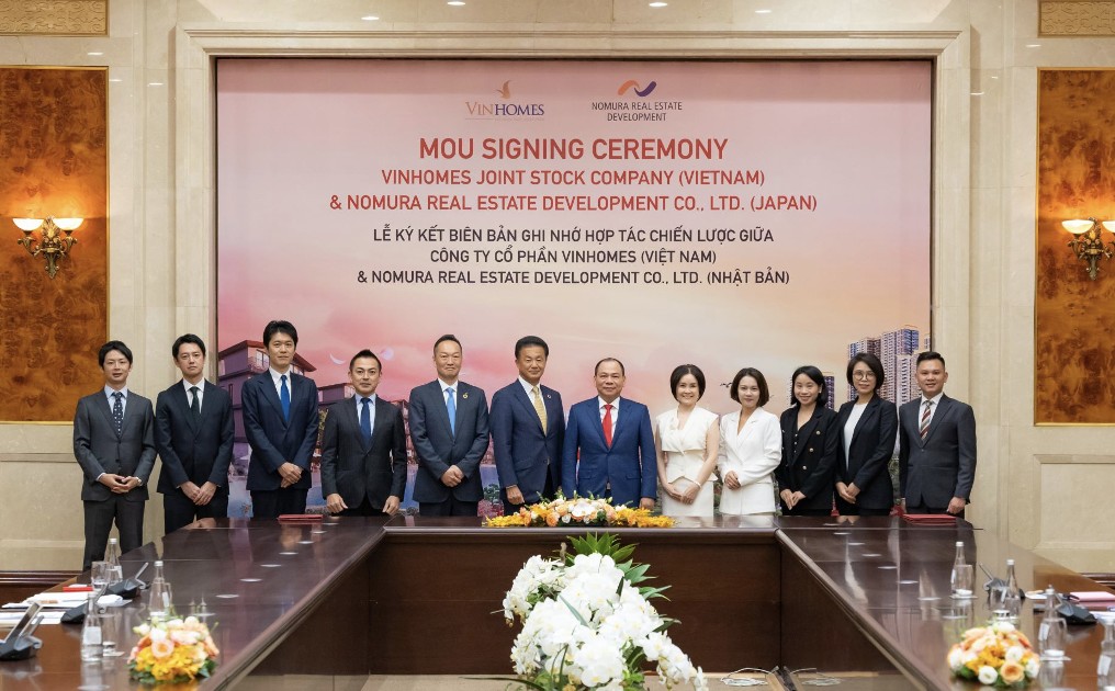 Công ty Cổ phần Vinhomes và Tập đoàn Nomura Real Estate (Nhật Bản) đã ký kết biên bản ghi nhớ (MoU) hợp tác chiến lược toàn diện trong các lĩnh vực trọng tâm: Bất động sản Nhà ở, bất động sản Thương mại, Logistics và các lĩnh vực trọng tâm khác liên quan đến bất động sản. Sự hợp tác sẽ giúp phát huy thế mạnh của mỗi bên nhằm mang đến cho thị trường những sản phẩm đột phá theo tiêu chuẩn quốc tế.