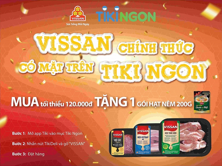 Nhân dịp có mặt tại Tiki Ngon, Vissan có cũng chương trình siêu ưu đãi “Mua thịt tươi ngon – nhận ngay quà tặng”. Theo đó, khách hàng khi mua đơn hàng thịt tươi sống (heo, bò) tại gian hàng Vissan trên Tiki Ngon với giá trị từ 120.000 đồng trở lên sẽ được tặng 1 gói hạt nêm chuẩn vị thịt Vissan 200g.