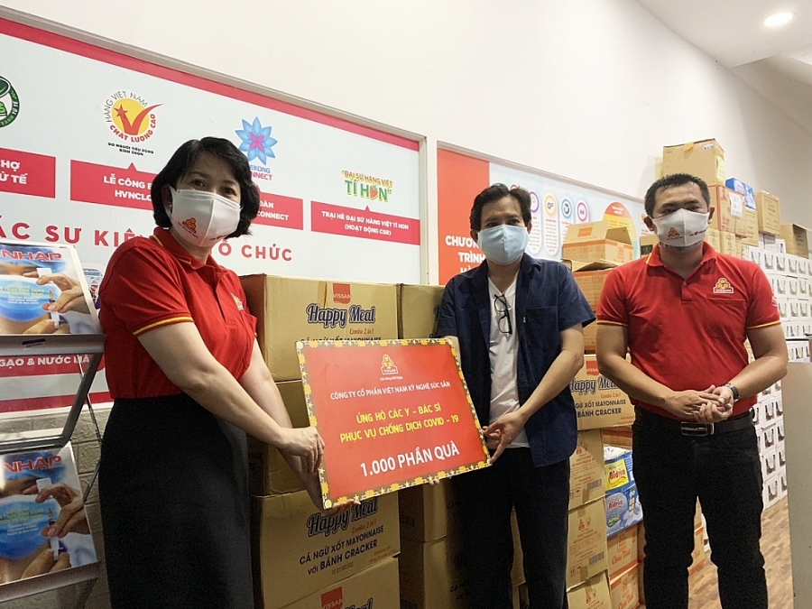 Ngoài ra, để thể hiện sự biết ơn sâu sắc và lời cảm ơn chân thành đến các đội ngũ y, bác sĩ đã hết mình chiến đấu đẩy lùi dịch bệnh, Công ty VISSAN đã trao tặng 1.000 phần quà cho Hội Doanh nghiệp hàng Việt Nam chất lượng cao TP. Hồ Chí Minh để chuyển đến hỗ trợ cho đội ngũ y bác sĩ, nhân viên y tế, tình nguyện viên đang phục vụ chống dịch Covid-19 tại 14 bệnh viện, điểm xét nghiệm cho toàn thành phố. VISSAN mong rằng những phần quà này sẽ phần nào tiếp thêm sức mạnh và nghị lực cho người dân có hoàn cảnh khó khăn vượt qua đại dịch trước những diễn biến phức tạp của dịch bệnh.