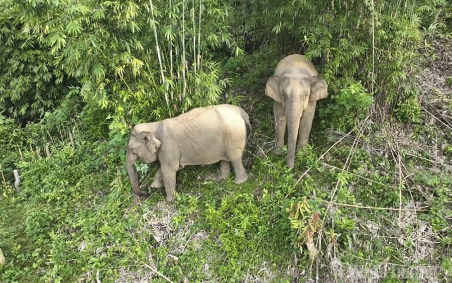 | 2 mẹ con voi rừng về gần khu dân cư ở xã Châu Phong suốt nhiều ngày nay |