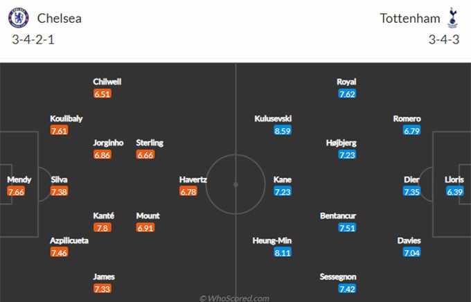 Thông tin lực lượng: Chelsea: Kovacic chấn thương; Tottenham: Skipp chấn thương.