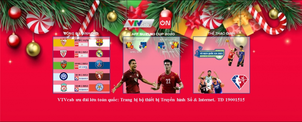 Tâm điểm thể thao dịp giáng sinh đó chính là hai trận đấu bán kết của tuyển Việt Nam và Thái Lan, hiện là 2 đội bóng mạnh nhất Đông Nam Á. Cuộc đối đầu giữa họ được xem là trận “chung kết” sớm của AFF Cup 2020. Đội nào giành chiến thắng nhiều khả năng lên ngôi vô địch AFF Cup 2020. Đó là nhận định của chuyên gia bình luận bóng đá nổi tiếng Gabriel Tan của ESPN Asia chia sẻ trước thềm 2 trận đấu bán kết lượt đi (19h30 – 23/12) và lượt về (19h30 – 26/12) giữa Việt Nam - Thái Lan và được tường thuật trực tiếp trên VTVcab, ON.