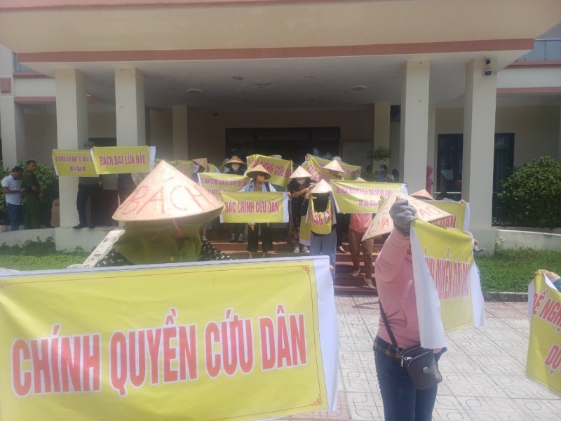| Các hộ dân mua dự án của Bách Đạt An mang băng-rôn đi đòi quyền lợi |