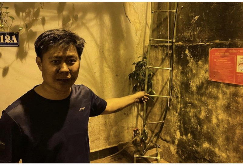 "Gia đình tôi có 4 người, gồm vợ chồng và 2 con nhỏ. Sau khi chạy ra ngoài, tôi ngửi thấy mùi khét kèm khói đen bốc lên nghi ngút từ tầng 1. Ngay lập tức, tôi hô hoán vợ con chạy ra phía sau căn hộ, dùng thang dây và tụt xuống con ngõ phía sau tòa nhà", anh Huy cho biết.