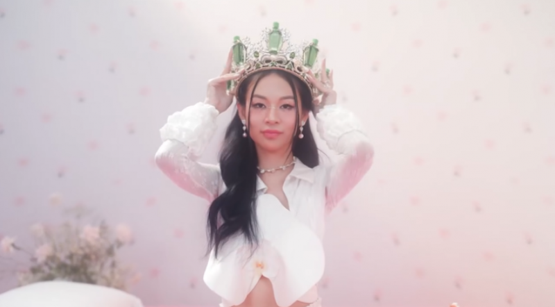 Phí Phương Anh đội vương miện dầu gió xanh độc lạ xuất hiện trong MV. (Ảnh chụp màn hình trong MV "Dancing Queen")