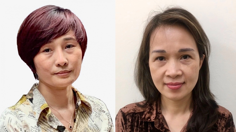 Bị can Nguyễn Thị Tường Vi (trái) và Nguyễn Thị Dung Hạnh