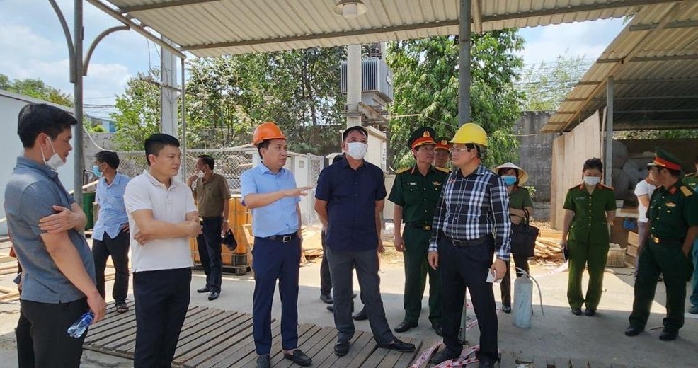 | Lãnh đạo UBND tỉnh Đồng Nai cùng các ban, ngành chức năng tại hiện trường vụ nổ - Ảnh: C.A Đồng Nai |