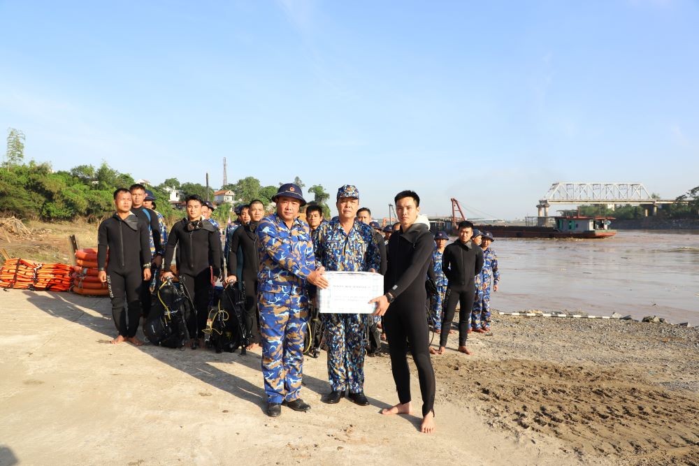 Trước đó, thực hiện ý kiến chỉ đạo của Thủ trưởng Bộ Quốc phòng, Quân chủng Hải quân đã triển khai lực lượng gồm 40 cán bộ, chiến sĩ đặc công tinh nhuệ cùng đầy đủ trang thiết bị, phương tiện tham gia tìm kiếm người mất tích trong vụ sập cầu Phong Châu, tỉnh Phú Thọ.