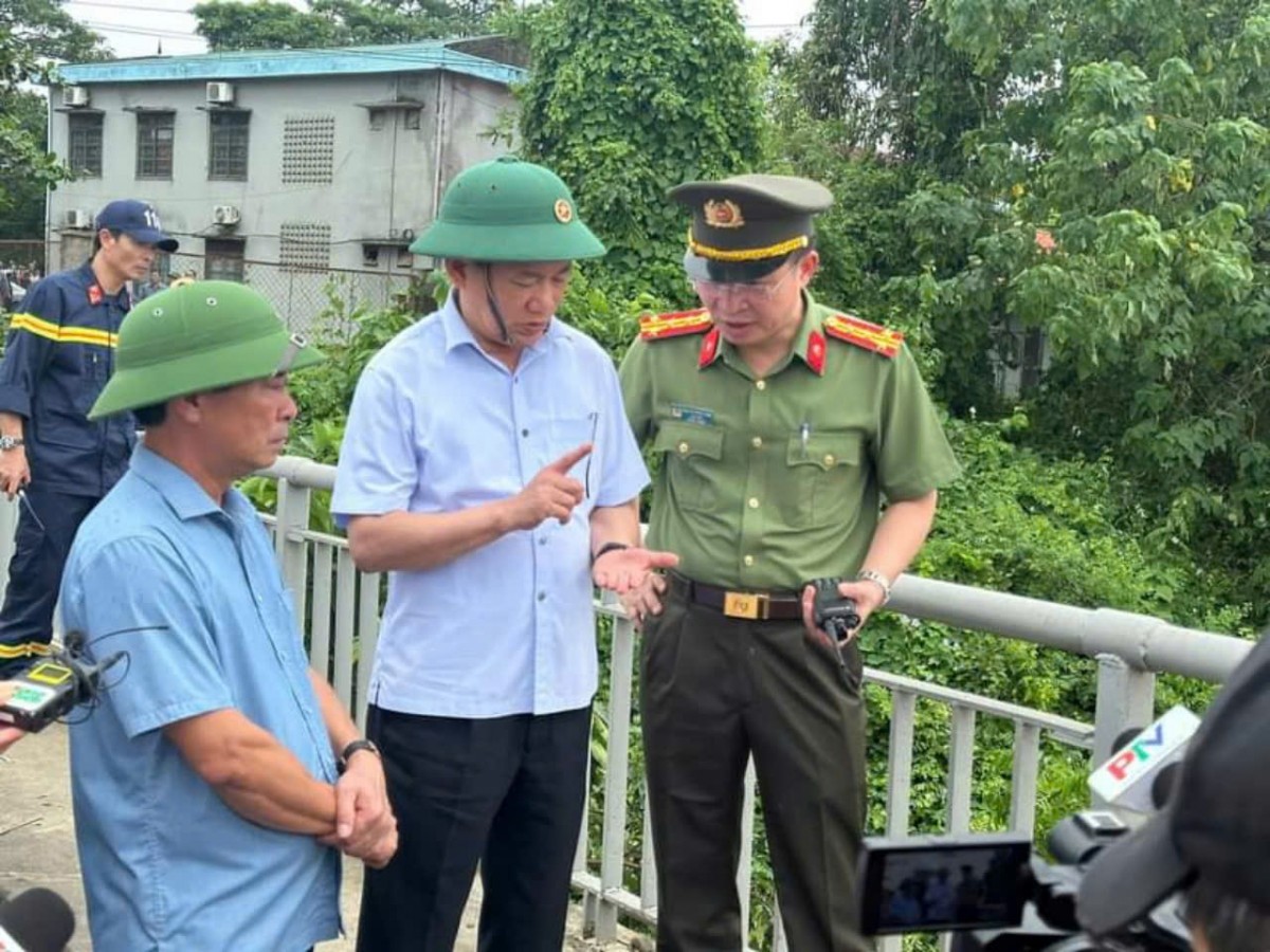 | Sáng ngày 9/9, ngay sau khi nhận được tin báo về vụ sập cầu Phong Châu, Phó Thủ tướng Hồ Đức Phớc đã đến hiện trường chỉ đạo công tác cứu hộ, cứu nạn. (Ảnh: Công an tỉnh Phú Thọ) |