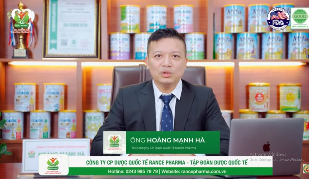 | Ông Hoàng Mạnh Hà, Tổng Giám đốc Công ty Cổ phần Dược quốc tế Ranse Pharma trong một video giới thiệu về các sản phẩm sữa của Ranse Pharma. Ảnh chụp từ màn hình |