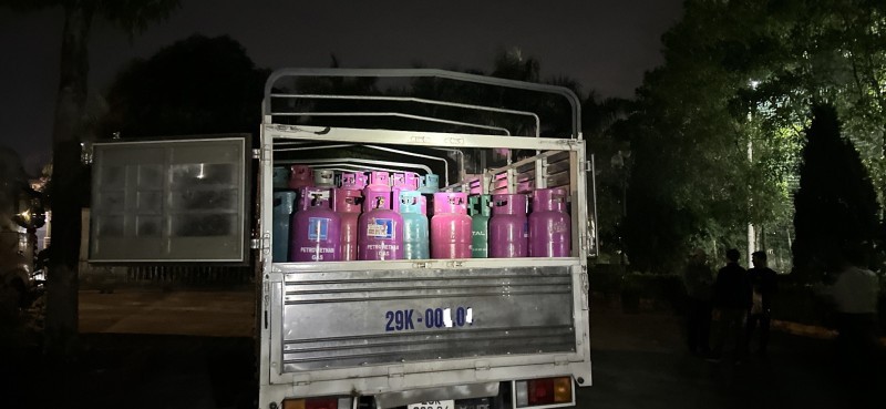 Trong các chai đều có chứa khí nghi là khí LPG nhưng không có niêm màng co trên van chai. Tại thời điểm kiểm tra, lái xe không xuất trình được hồ sơ, giấy tờ chứng minh nguồn gốc, xuất xứ chai LPG.