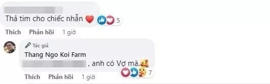 Khi được một cư dân mạng đã để lại bình luận dưới bức ảnh rằng: “Thả tim cho chiếc nhẫn” thì Thắng Ngô đã không ngần ngại đáp: “Anh có vợ mà”. Động thái này của “Vua cá Koi” Thắng Ngô như một cách ngầm phủ nhận tin đồn ly hôn với Hà Thanh Xuân.