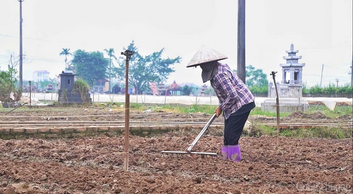 Tương tự nhà bà Chiến, ra vườn cải tạo đất đai, chờ mòn mỏi ngày hôm nay để xuống giống trên ruộng rau, anh Nguyễn Ngọc Tân (thôn Đông Cao, xã Tráng Liệt, huyện Mê Linh) cũng không khỏi lo lắng.