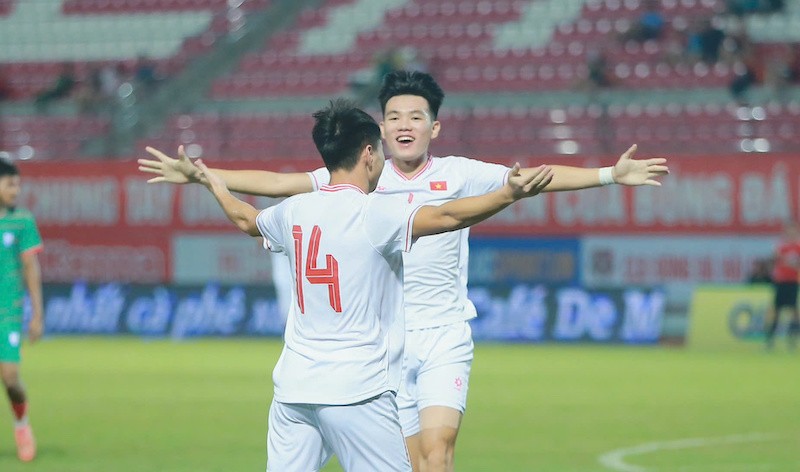 | U20 Việt Nam giành chiến thắng đậm trước U20 Bangladesh. Ảnh: LĐ |