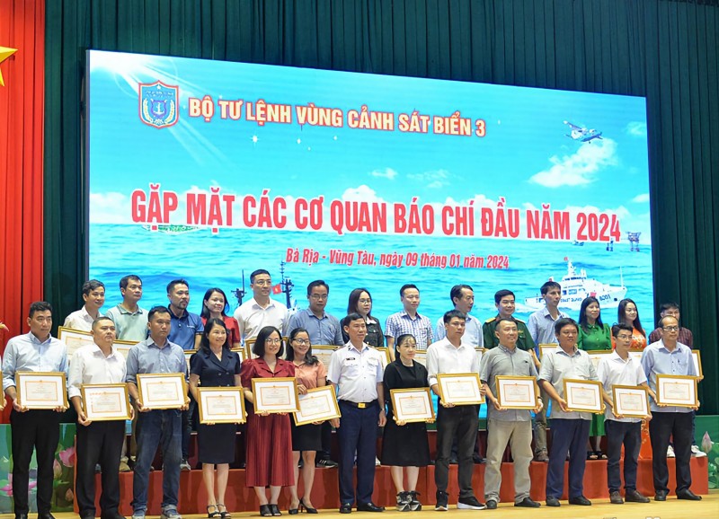 Tại chương trình, Bộ Tư lệnh Vùng Cảnh sát biển 3 đã trao tặng giấy khen cho 28 tập thể và 50 cá nhân của các cơ quan báo chí vì đã có thành tích xuất sắc trong hoạt động phối hợp tuyên truyền năm 2023.