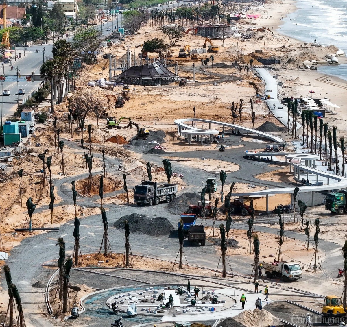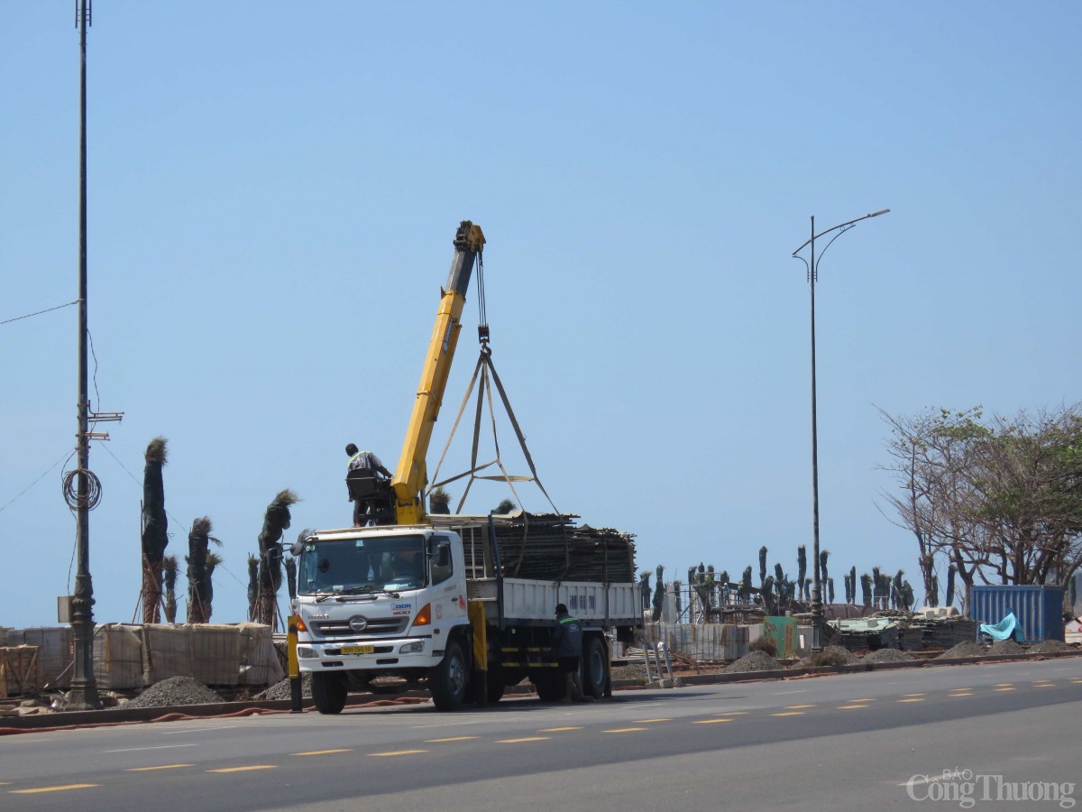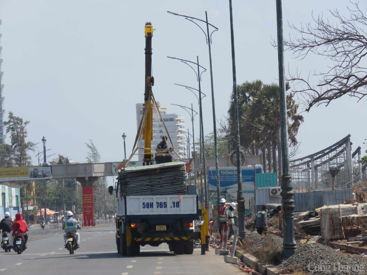 Ở phía rìa biển, nhiều khu vực đã được trồng cây xanh, hình hài khuôn viên đã dần hiện rõ. Phần vỉa hè cũng đã được lát gạch, tuy nhiên, lại phải “cõng” hàng chục kiêu gạch khác. Ngoài ra, theo ghi nhận của phóng viên, mặc dù phần vỉa hè mới được lát gạch nhưng một số vị trí có dấu hiệu bong tróc.