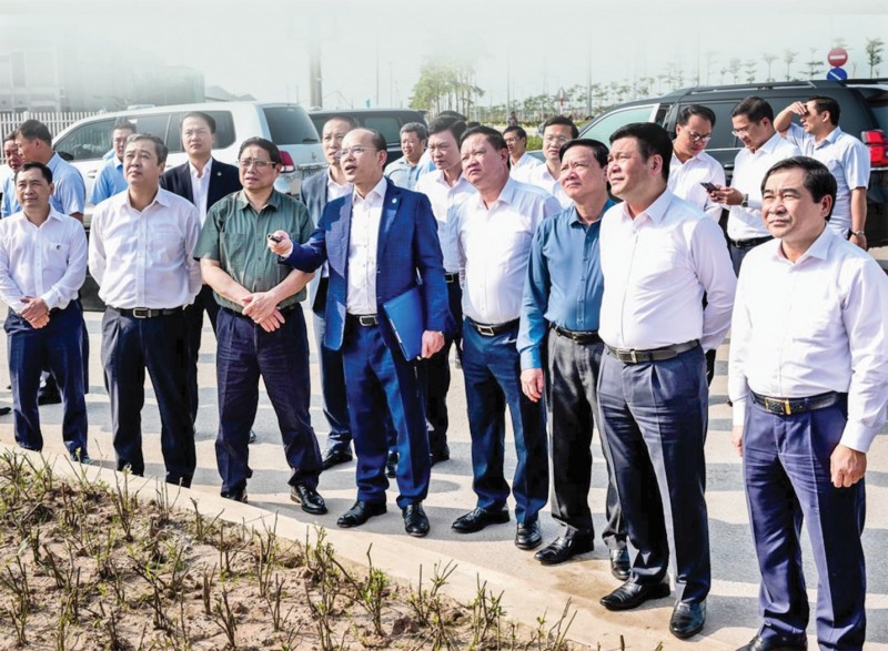 Thủ tướng Chính phủ Phạm Minh Chính, Phó Chủ tịch Quốc hội Nguyễn Khắc Định, Bộ trưởng Bộ Công Thương Nguyễn Hồng Diên, Bí thư Tỉnh ủy Thái Bình Ngô Đông Hải cùng lãnh đạo tỉnh Thái Bình khảo sát Khu công nghiệp Liên Hà Thái |