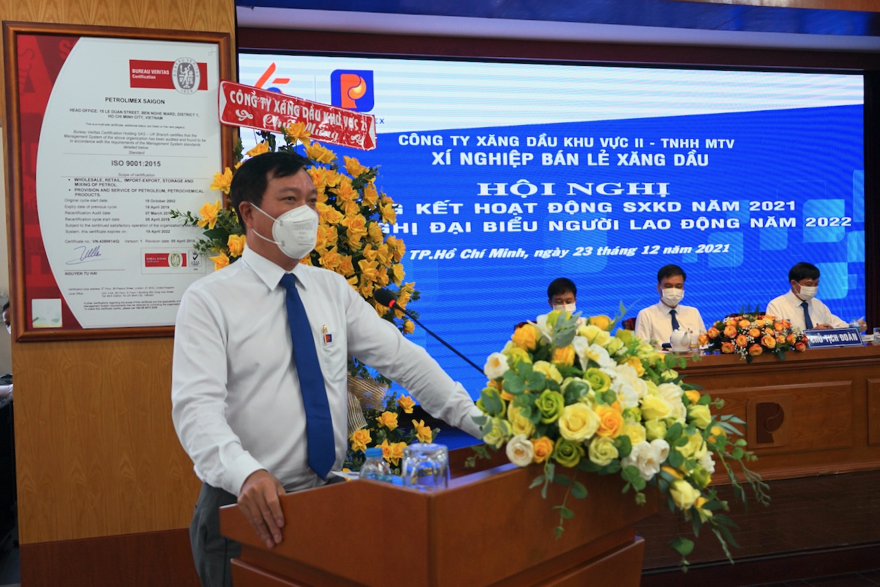 Phát biểu tại hội nghị, ông Võ Văn Tân - Giám đốc Petrolimex Sài Gòn ghi nhận, đánh giá cao những kết quả đạt được của CBCNV, NLĐ xí nghiệp trong năm 2021. Đồng thời yêu cầu năm 2022, xí nghiệp tập trung thực hiện bảy nhiệm vụ trọng tâm: Thứ nhất, đảm bảo tuyệt đối an ninh, an toàn mọi phương diện trong hoạt động SXKD; tiếp tục quan tâm đến công tác phòng chống dịch Covid-19 trong thời điểm diễn biến dịch còn phức tạp.