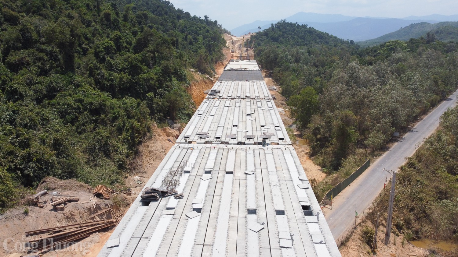 Trong đó, cầu Khánh Bình (Km 346+756) bắc qua vùng núi xã Khánh Bình (huyện Khánh Vĩnh, tỉnh Khánh Hoà) là chiếc cầu dài nhất, lớn nhất dự án. Dưới cái nóng gay gắt, hơn 360 công nhân, kỹ sự tất bật làm việc bất kể ngày đêm để đẩy nhanh tiến độ thi công cầu.