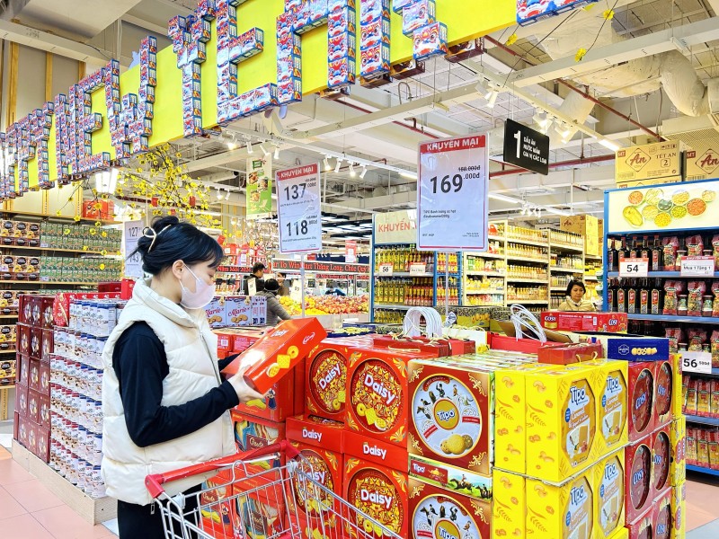 Cụ thể, trong thời gian từ 11/01/2024 - 24/01/2024, hệ thống bán lẻ trên toàn quốc đang triển khai chương trình “Trọn vị tết to - Không lo về giá” với hơn 600 sản phẩm đa dạng ngành hàng được ưu đãi lên tới 50%. Các sản phẩm được khuyến mại bao gồm: Táo rockit New Zealand có giá từ 139.900 đồng giảm còn 109.900 đồng/hộp 4 trái; bắp giò xông khói Ngự Bảo 300g giảm 30% từ 110.000 đồng còn 77.000 đồng; nước giải khát 320ml Coca-Cola giảm 17% từ 60.400 đồng còn 49.900 đồng; hạt hướng dương nguyên vị Cha Cheer 130g giảm còn 23.500 đồng; kẹo sữa caramen quà tết 120g Alpenliebe giảm 24% còn 24.500 đồng; bánh quy bơ Pháp 540g LU giảm 27% từ 205.000 đồng còn 149.000 đồng; bộ lau nhà Starplus giảm 47% còn 199.000 đồng; chảo Sunhouse chống dính đáy từ giảm 50% còn 99.000 đồng; nước giặt 3.05kg Downy 3.05kg giảm 34% từ 251.000 đồng còn 165.000 đồng;... và các ưu đãi mua 2 tặng 1, mua 1 tặng 1 như: Đùi gà Tây xông khói 800g TPCS giá 265.000 đồng; socola đen hạt dẻ 100g Ritter Sport giá 66.500 đồng;...