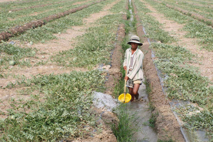 | Nông dân xã Hưng Hội, huyện Vĩnh Lợi, Bạc Liêu trồng dưa hấu dưới ruộng lúa đạt hiệu quả kinh tế cao |