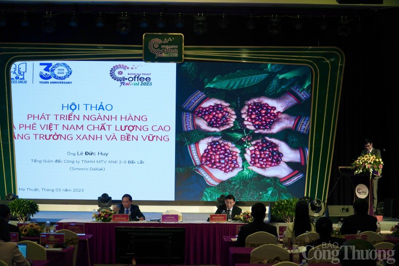| Hội thảo “Xây dựng chuỗi ngành hàng cà phê Việt Nam chất lượng cao gắn với tăng trưởng xanh và phát triển bền vững” diễn ra trong khuôn khổ Lễ hội Cà phê Buôn Ma Thuột lần thứ 8 năm 2023. |