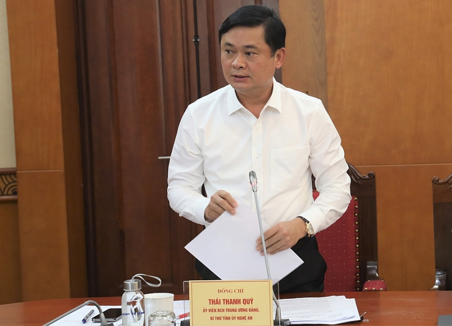 Phát biểu tại cuộc làm việc, Bí thư Tỉnh ủy Nghệ An Thái Thanh Quý trân trọng cảm ơn lãnh đạo Ban Kinh tế Trung ương, các ban, bộ, ngành Trung ương rất ủng hộ, chia sẻ, giúp đỡ tỉnh Nghệ An trong suốt quá trình triển khai Nghị quyết 26 của Bộ Chính trị; gần đây nhất là sự ủng hộ thể hiện bằng việc đã ban hành Nghị quyết số 36 của Quốc hội về thí điểm một số cơ chế, chính sách đặc thù phát triển tỉnh Nghệ An.