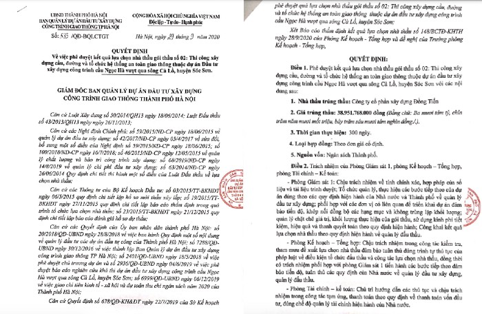 Ban Quản lý dự án đầu tư xây dựng công trình giao thông thành phố Hà Nội trên tư cách là chủ đầu tư, trực tiếp mời thầu đã lựa chọn Công ty Xây dựng Đồng Tiến là nhà thầu thi công với giá trúng 38.951.768.000 đồng (38,95 tỷ đồng), thấp hơn 245.434.000 đồng giá dự toán, tương đương tỷ lệ giảm giá 0,6% cho ngân sách nhà nước. Giữa thời kỳ khó khăn muôn trùng bởi dịch bệnh Covid-19, gói thầu của Công ty Xây dựng Đồng Tiến khiến không ít đối thủ ganh tị.