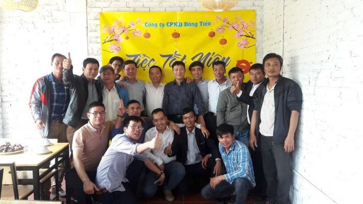 | Doanh nhân Nguyễn Mạnh Hải cùng các cán bộ, công nhân viên trong sự kiện tất niên cuối năm |