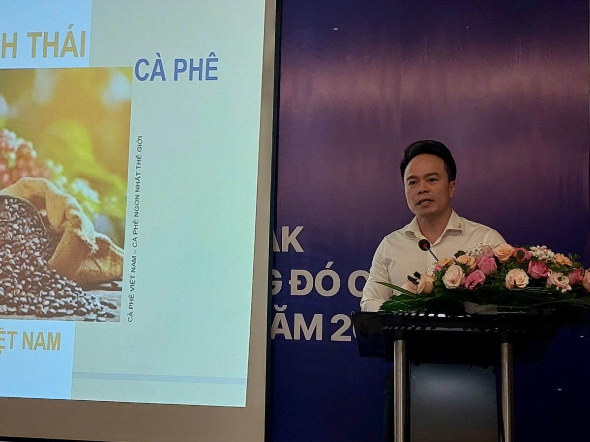 Ông Ngô Chung Khanh, Phó Vụ trưởng Vụ Chính sách thương mại đa biên, Bộ Công Thương trình bày về Hệ sinh thái tận dụng FTA, trong ngành cà phê tại Toạ đàm |