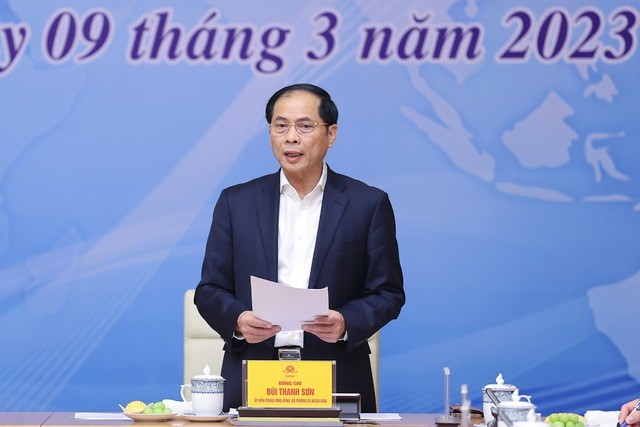 Trình bày báo cáo trọng tâm công tác ngoại giao kinh tế năm 2023, Bộ trưởng Bộ Ngoại giao Bùi Thanh Sơn khẳng định, công tác ngoại giao kinh tế trong năm 2022 đã bám sát các trọng tâm điều hành của Chính phủ, các ý kiến chỉ đạo của Thủ tướng Chính phủ, kịp thời chuyển trọng tâm từ ngoại giao phục vụ phòng, chống dịch bệnh sang phục hồi và phát triển kinh tế-xã hội.