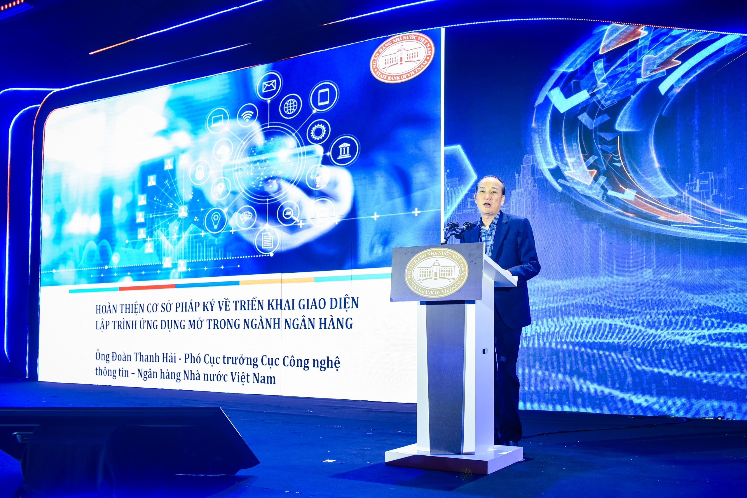 | Ông Đoàn Thanh Hải, Phó Cục trưởng Cục Công nghệ thông tin, Ngân hàng Nhà nước chia sẻ tại hội thảo |